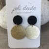 Décor fait à partir de tissu recyclé noir à pois doré recouvert de résine.