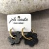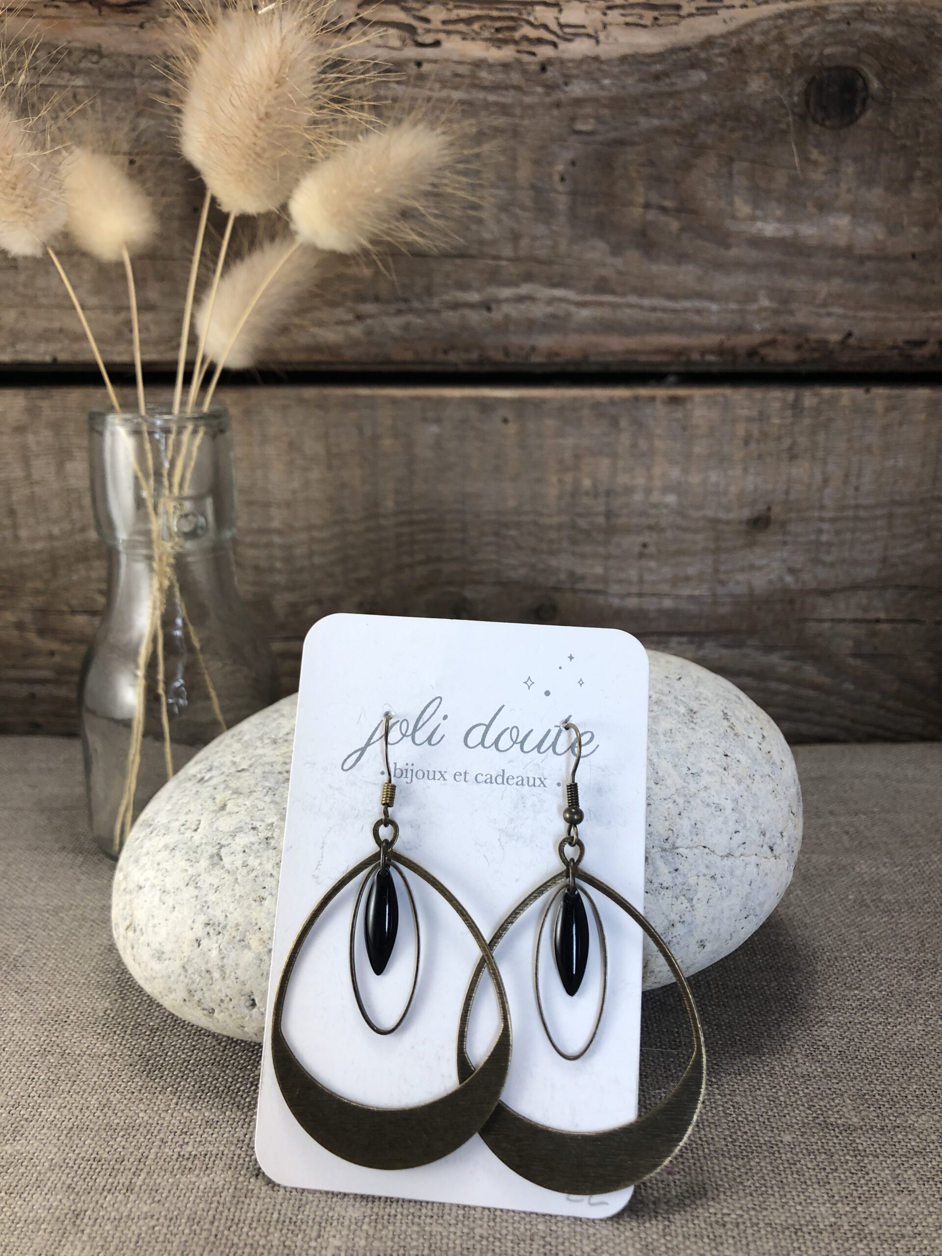 Grandes boucles d’oreilles bronze avec petits sequins émaillés noirs.